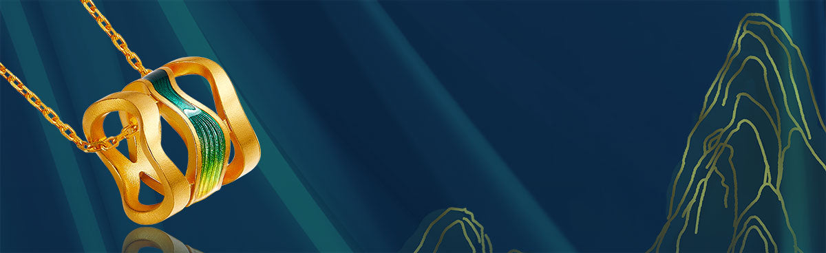 青绿国色展示的是 24K 古法金的恒久之美,古法金以柔和的金色和永恒的价值而闻名。每件作品都由老凤祥工匠精心打造,确保精致与坚固之间的完美平衡。选择 24k 古法金搭配珐琅,刚柔并济,展现碧山绿水,人与自然的美好结合。