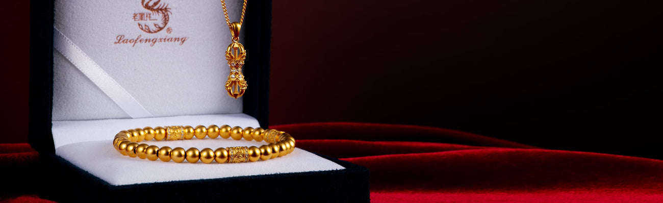 24K Antique Gold Diamond Six-Syllable Bead Bracelet