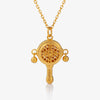 A modern tribute to heritage, this 24K gold pendant reimagines the classic 拨浪鼓 (spinning rattle)—a traditional symbol of blessing, peace, and joyful beginnings. Crafted in hollow 24K gold, it features a movable center with latticework detail and two dangling gold drops, echoing the soft chime of ancient protection charms.
