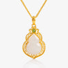 The Nephrite and 24K Gold Filigree Hulu Pendant is a true masterpiece of craftsmanship. This exquisite piece features a central nephrite stone framed by intricate gold filigree, showcasing the expertise of Lao Feng Xiang artisans. The harmonious blend of nephrite and 24K gold evokes a sense of elegance, making it a perfect addition to any jewelry collection.