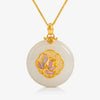 Celebrate the harmony of nature and luxury with our 9.80g Nephrite and 24K Gold Filigree Lotus Pendant. This stunning piece is meticulously crafted from fine nephrite and framed in luminous 24K gold. The intricate filigree showcases a lotus motif adorned with delicate pink enamel, symbolizing purity and enlightenment. This pendant effortlessly combines traditional Chinese craftsmanship with a modern elegance, making it the perfect statement for any occasion.