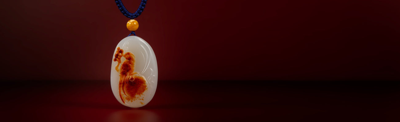 Hand-Carved Nephrite With Date-red Skin Pendant (和田玉白玉喜事连连吊坠)