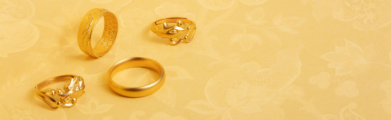 24K Antique Gold Dragon and Phoenix Filigree Band