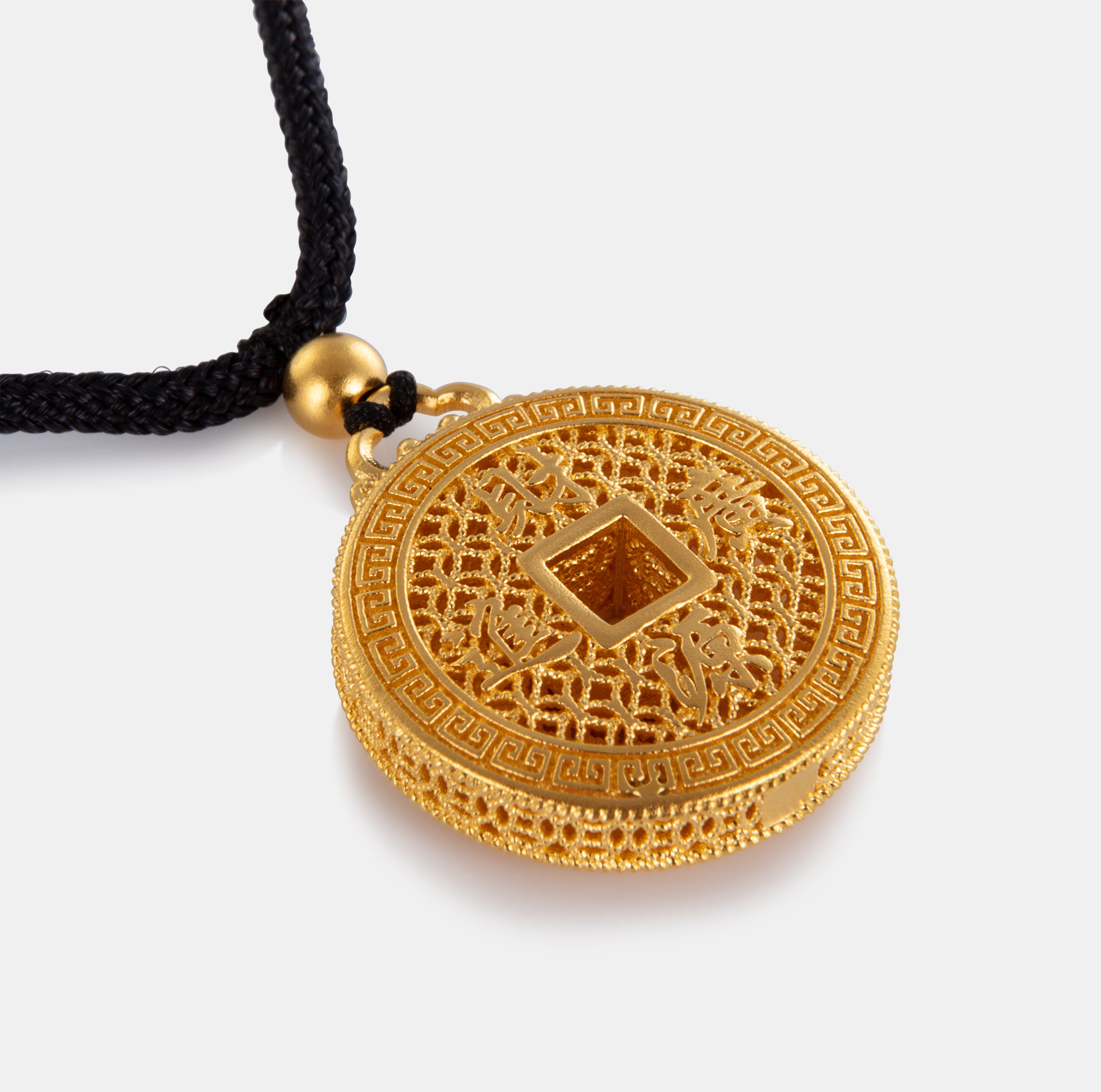Inspired by traditional Chinese coinage, this pendant merges ancient prosperity symbols with intricate filigree craftsmanship. The characters 吉祥如意 (auspicious and as you wish) invite luck and harmony in every step of life.