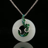 Elevate your elegance with our 18K White Gold Nephrite Pendant. This exquisite piece features a hand-carved nephrite jade, adorned with vibrant enamel detailing and sparkling diamonds, all set in luxurious 18K white gold. Perfect for any special occasion or everyday wear.