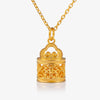 This 24K gold pendant reimagines the form of a traditional Chinese seal (印章)—a symbol of personal legacy, authority, and spiritual imprint. Handcrafted in filigree hollow gold, the cylindrical charm features intricate latticework with a sculptural double-scroll handle, recalling both historical seals and ritual incense containers.