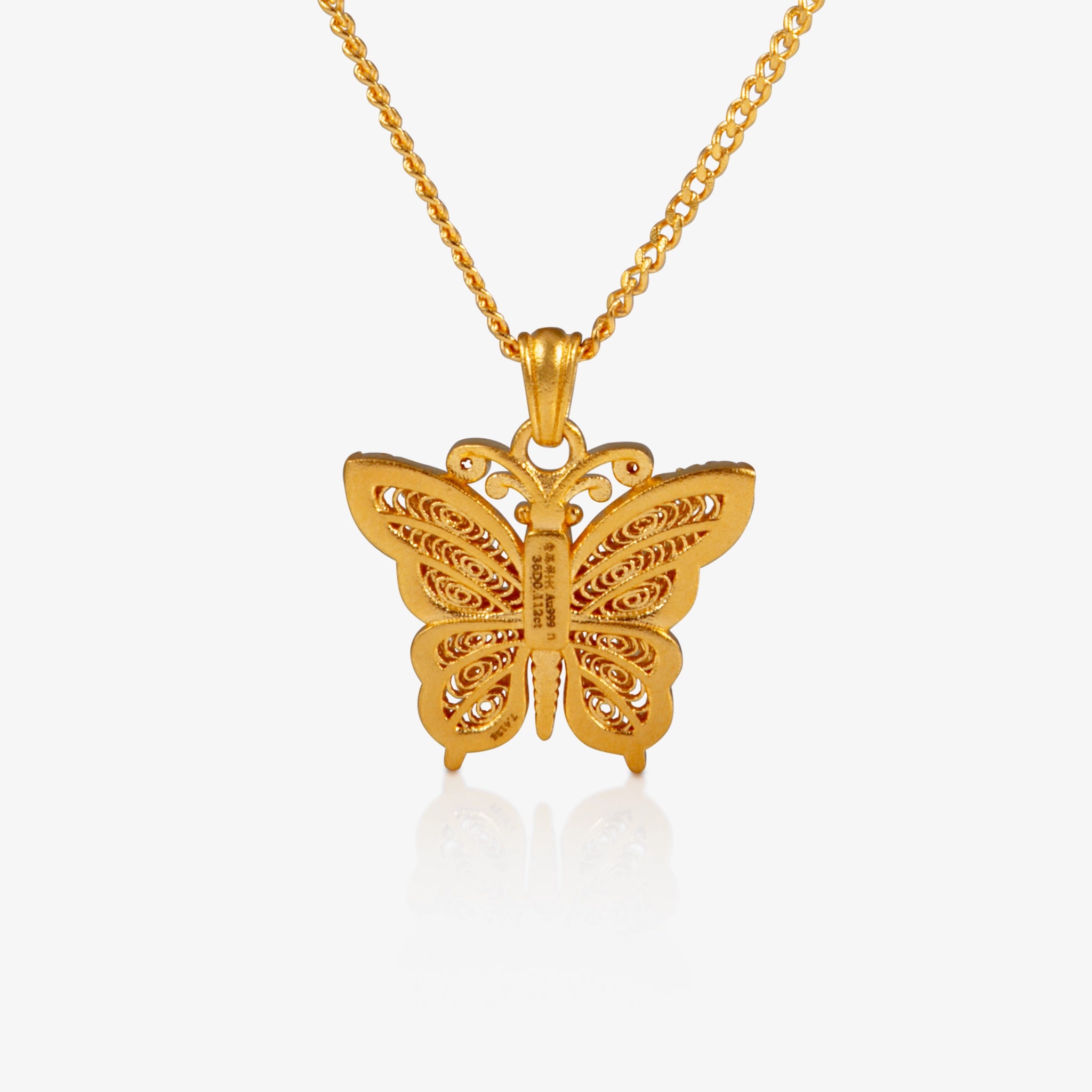 A sculptural filigree butterfly crafted in 24K Antique Gold and accented with shimmering diamonds. Intricate, dimensional, and rich in heritage, it reflects Lao Feng Xiang’s mastery of traditional gold artistry.
