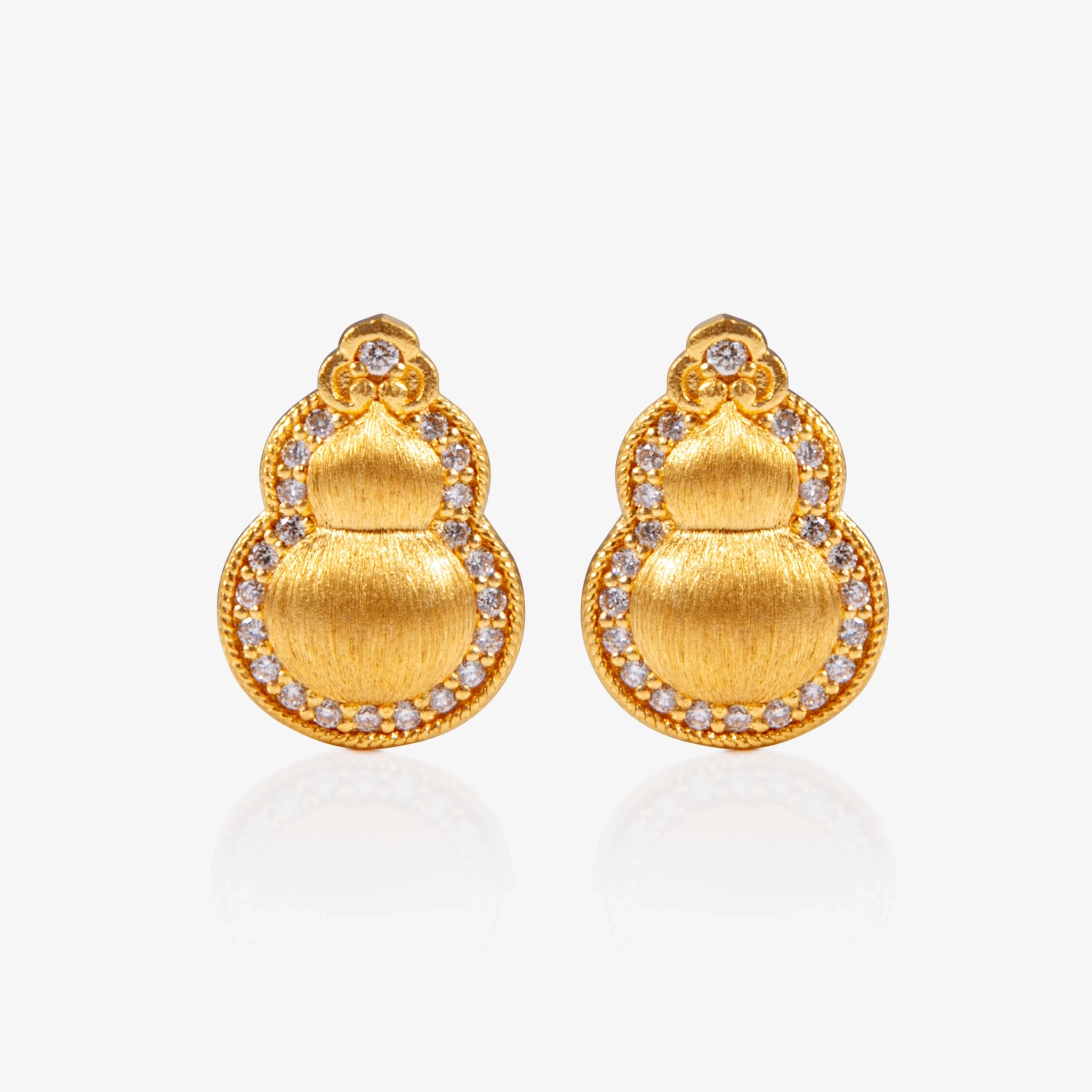 The hulu is a symbol of protection, well-being, and gathered blessings. In pure 24K Gold, its rounded form carries meaning with quiet strength, illuminated by natural diamonds.