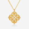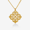A celebration of intricate goldwork and meaningful design, this clover-shaped pendant is handcrafted in rich 24K antique gold and accented with milgrain edging that adds depth to every curve. Four natural diamonds are bezel-set at the crosspoints, catching light with each movement and softly gleaming against the matte golden surface.