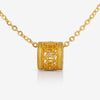 Shaped like a sacred scroll, this 24K antique gold necklace features a cylindrical pendant sculpted in traditional filigree and illuminated with three natural diamonds. Each detail reflects the quiet artistry of old-world blessings, reimagined for the present.