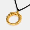 Necklace in 24K Antique Gold craftsmanship on a black silk cord.