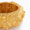 Embrace the majestic power and strength of the dragon with our 24K Gold Dragon Wedding Bangle. Weighing 44.38 grams, this exquisite bangle features an intricately detailed dragon motif, symbolizing masculinity, resilience, and prosperity in Chinese culture. The polished finish enhances the luxurious appeal, making it a perfect piece for your special day. Hand-crafted from pure 24K gold, this bangle is a meaningful addition to your wedding jewelry collection, designed to bring good fortune and blessings to your union. Celebrate your marriage with this timeless piece that combines traditional symbolism with elegant craftsmanship.