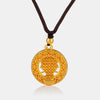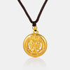 Necklace in 24K Antique Gold craftsmanship on a black silk cord.