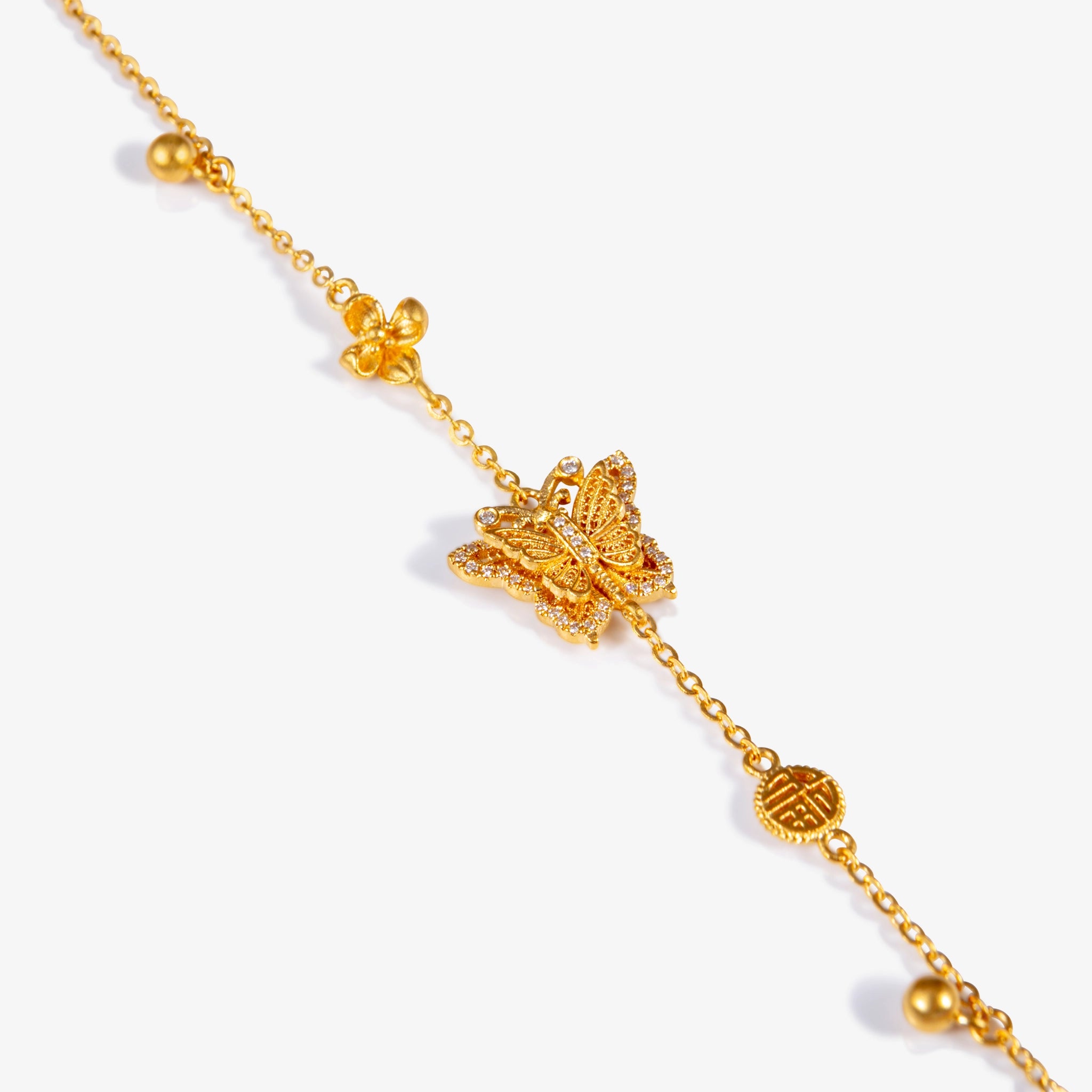 Design: Butterfly motif paired with a Gold line-bracelet structure