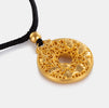 Necklace in 24K antique gold fabrication with a black knotted cord