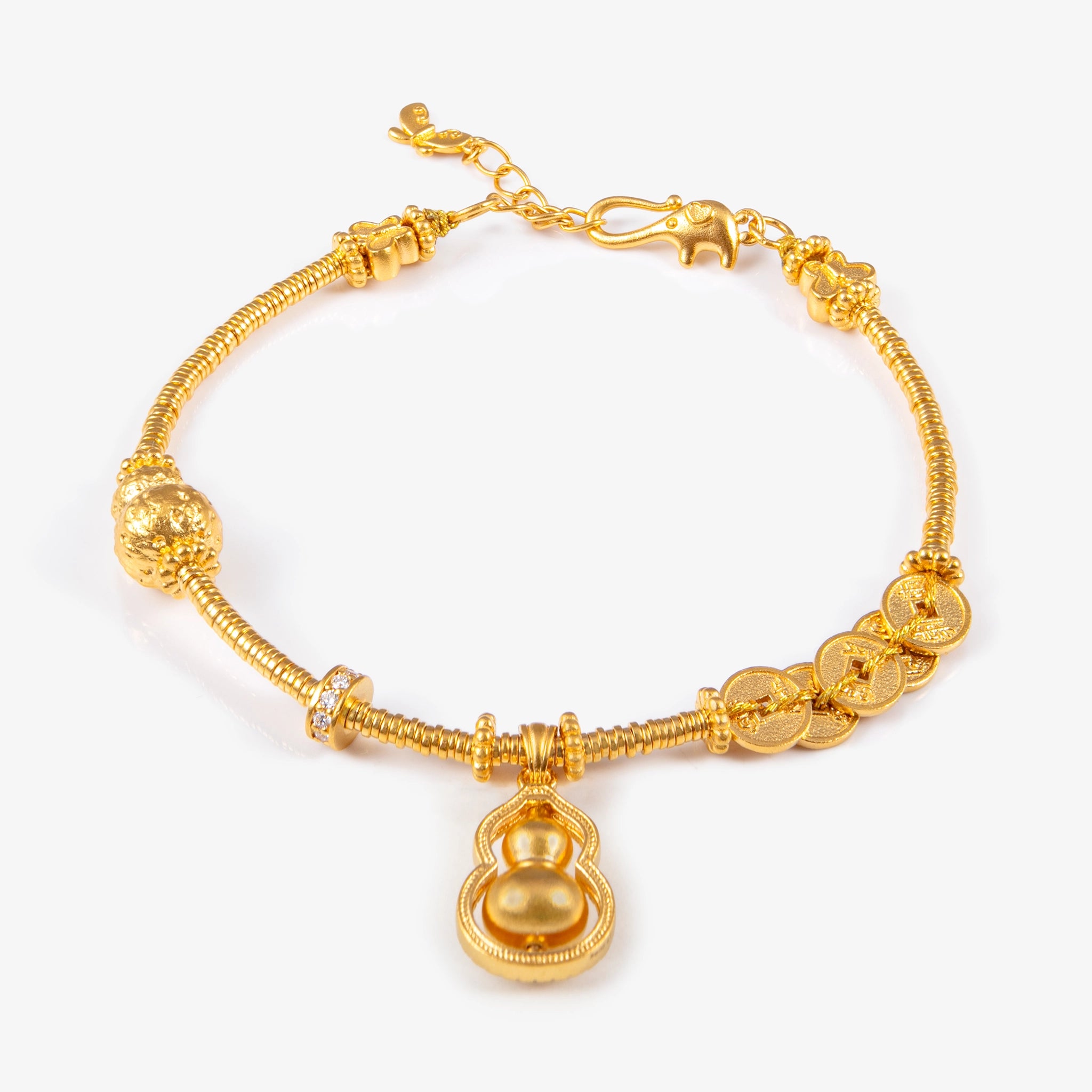 The hulu symbolizes protection and well-being, while ancient coins represent prosperity and the circulation of good fortune. Together in pure 24K Gold, the motifs form a piece rooted in cultural meaning, brought to life through natural diamonds and traditional craftsmanship.