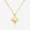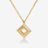 This 24K gold necklace features a precision-cut geometric drop pendant composed of two faceted forms suspended from a paperclip and cable chain. With its sculptural silhouette and angular symmetry, the piece balances architectural boldness with refined simplicity.