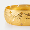 Embrace the rich symbolism of Chinese culture with our 24K Gold Dragon and Phoenix Bangle. Weighing 24.73 grams, this exquisite bangle features an intricate dragon and phoenix motif, representing the perfect balance of yin and yang. The dragon symbolizes power, strength, and masculinity, while the phoenix embodies grace, beauty, and femininity. Together, they epitomize harmony, prosperity, and marital bliss. Crafted from pure 24K gold with a textured and polished finish, this bangle is a luxurious and meaningful addition to your wedding jewelry collection. Celebrate your union with this timeless piece designed to bring good fortune and blessings to your marriage.