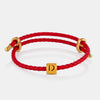 24K Gold Letter D Charm on red leather bracelet