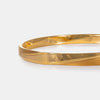 This 24K gold bangle features a smooth, tapered silhouette with subtle ridge detailing along the edge. Elegant and weighty, the form gently curves for a natural fit while reflecting light across its polished surface. Designed for timeless simplicity with lasting presence.