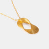 This 24K gold necklace features a sculpted open-loop pendant formed by layered ridges, creating a dynamic silhouette that flows infinitely. Paired with a minimalist paperclip chain, the design evokes continuity, strength, and timeless modernity.