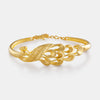 Adorn yourself with the graceful elegance of our 24K Gold Phoenix Bracelet. Weighing 20.56 grams, this exquisite bracelet features an intricately detailed phoenix motif, symbolizing grace, beauty, and femininity in Chinese culture. The polished finish enhances its luxurious appeal, making it a perfect piece for your wedding day. Hand-crafted from pure 24K gold, this bracelet is a meaningful addition to your bridal jewelry collection. Embrace the timeless beauty and cultural significance of the phoenix with this stunning piece, designed to bring good fortune and blessings to your marriage.