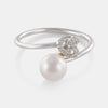 Ring in 18K white gold with an Akoya pearl and round brilliant diamonds