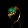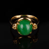Apple green jadeite cabochon set in a luminous 18K yellow gold ring. Round jadeite carat weight, 4.70.