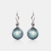 Earrings with black Tahitian pearl and round brilliant diamonds in 18K white gold