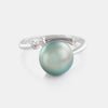 Ring with a black Tahitian pearl and round brilliant diamonds in 18K white gold