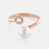 Ring in 18K rose gold with an Akoya pearl and round brilliant diamonds