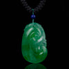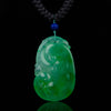 Hand-carved dark and intense green ruyi jadeite pendant. Jadeite carat weight, 12.97.