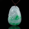 Hand-carved white with green veins, jadeite pendant. Jadeite carat weight, 14.56.