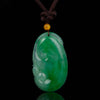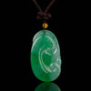 Hand-carved light green with intense green veins, jadeite pendant. Jadeite carat weight, 7.98.