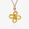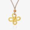 Woven with symbolic grace, this 24K gold pendant features an intricate double-loop knot — a powerful emblem of unity, continuity, and protection. Its textured finish adds rich dimension, while the red accent detailing evokes energy and balance.