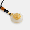 Necklace in 24K antique gold with nephrite on a black silk cord