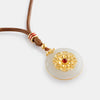 Necklace in 24K antique gold with nephrite on a black silk cord