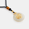 Necklace in 24K antique gold with nephrite on a black silk cord