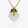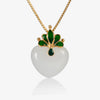 Embrace the beauty of love and craftsmanship with our Nephrite Heart Pendant. Featuring a smooth nephrite heart adorned with a crown of delicate green enamel accents, this pendant is set in lustrous 18K gold. A perfect accessory for any occasion, its detailed design reflects both sophistication and elegance, making it an ideal addition to your jewelry collection.