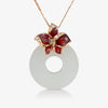 Discover the beauty of our Nephrite Peace Buckle with a Red Enamel Flower in 18K Rose Gold. This exquisite piece features a traditional peace buckle made from nephrite, symbolizing tranquility and protection. The buckle is adorned with a vibrant red enamel flower, meticulously crafted in 18K rose gold. Accent diamonds on the flower petals add a touch of sparkle, showcasing the exceptional craftsmanship and attention to detail. Ideal for those who appreciate unique and artistic designs, this pendant brings a pop of color and elegance to any outfit.