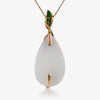 Discover the allure of our Nephrite Teardrop Pendant with Leaf Enamel in 18K Rose Gold. This exquisite pendant features a smooth nephrite teardrop, symbolizing purity and tranquility, adorned with vibrant green and blue leaf enamel accents. The delicate enamel work is beautifully complemented by the luxurious 18K rose gold setting. Perfect for those who appreciate the beauty of nature and fine craftsmanship, this pendant adds a touch of elegance and color to any ensemble.