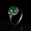 Intense dark green jadeite cabochon set in a luminous 18K yellow gold ring. Round jadeite carat weight, 3.50.