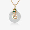 This stunning Peace Buckle Pendant features a smooth nephrite peace buckle adorned with a beautifully crafted enamel phoenix in 18K yellow gold. The vibrant enamel colors and the luxurious gold create a striking contrast, making this pendant a standout piece. Embrace the exquisite craftsmanship and unique design of this elegant pendant.