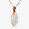 Design: Teardrop-shaped nephrite pendant with a phoenix motif in red enamel and diamond accents