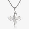 Design: Cross-shaped pendant with petal-like extensions featuring intricate filigree detailing and a smooth, polished finish