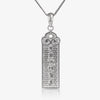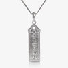 Design: Rectangular tag pendant with intricate engraving of the Six Syllable Mantra and a smooth, polished finish