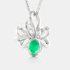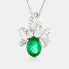 Pendant in 18K white gold with an oval emerald and mixed cut diamonds