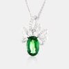 Pendant in 18K white gold with an oval garnet and mixed cut diamonds