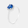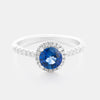 Ring in 18K white gold with round sapphire and round brilliant diamonds